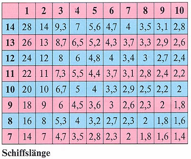 | 5 Sekunden | = 6 Knoten |